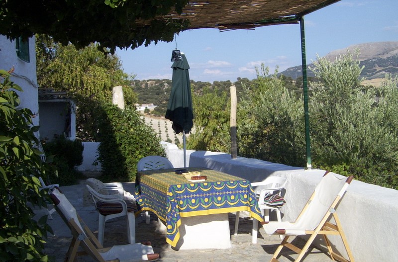 La Catalina: This was the original farm house, and has a wide terrace running the length of the building. Thick walls, white -washed with low white birch-beamed ceilings the house stays shutter-cool in summer and warm in winter. Although we spend most of our time outdoors when we are here, we love to relax beside the open log fire in the living room on winter evenings. There is a double bedroom, plus a large daybed in the living room. |