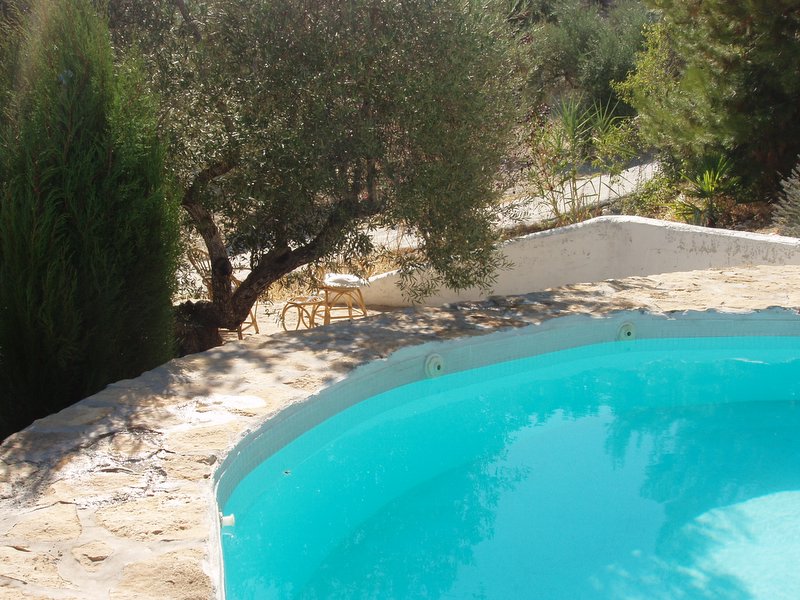 Pool & Terrace: There is a an oval swimming pool available to all the houses on a separate terrace below, alongside yet another sun terrace, with an olive tree providing shade, and stunning views across the valley. A stone staircase which has a spring-fed water course running alongside it for most of the year leads to the pool from a trough at the top. Endless entertainment for children! The pool is normally available for use from mid-May. Please feel free to check with us before your visit. |